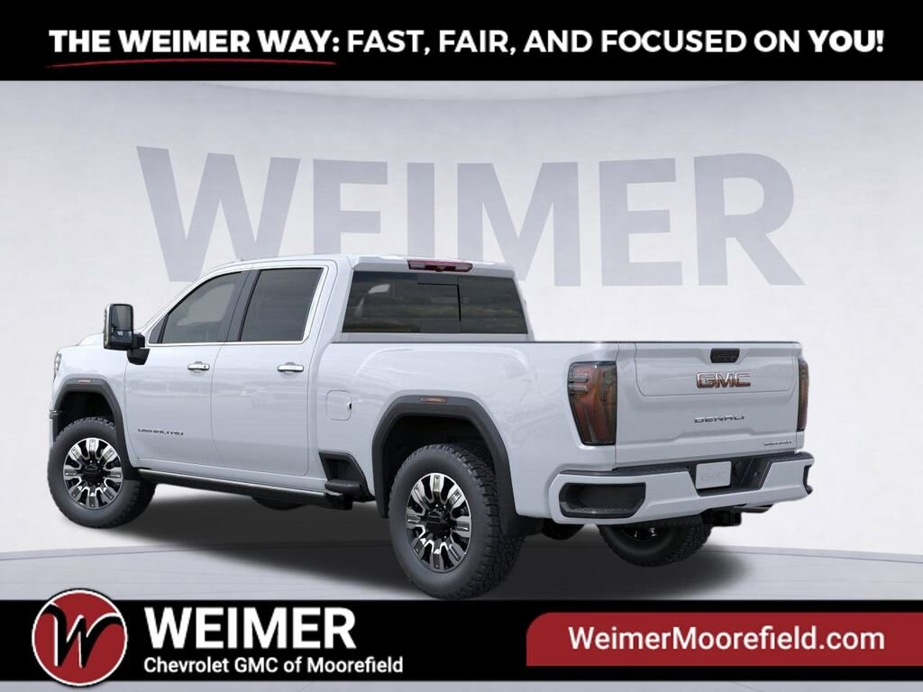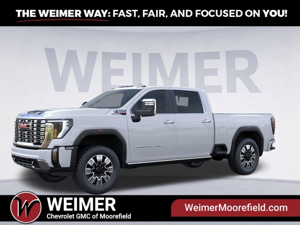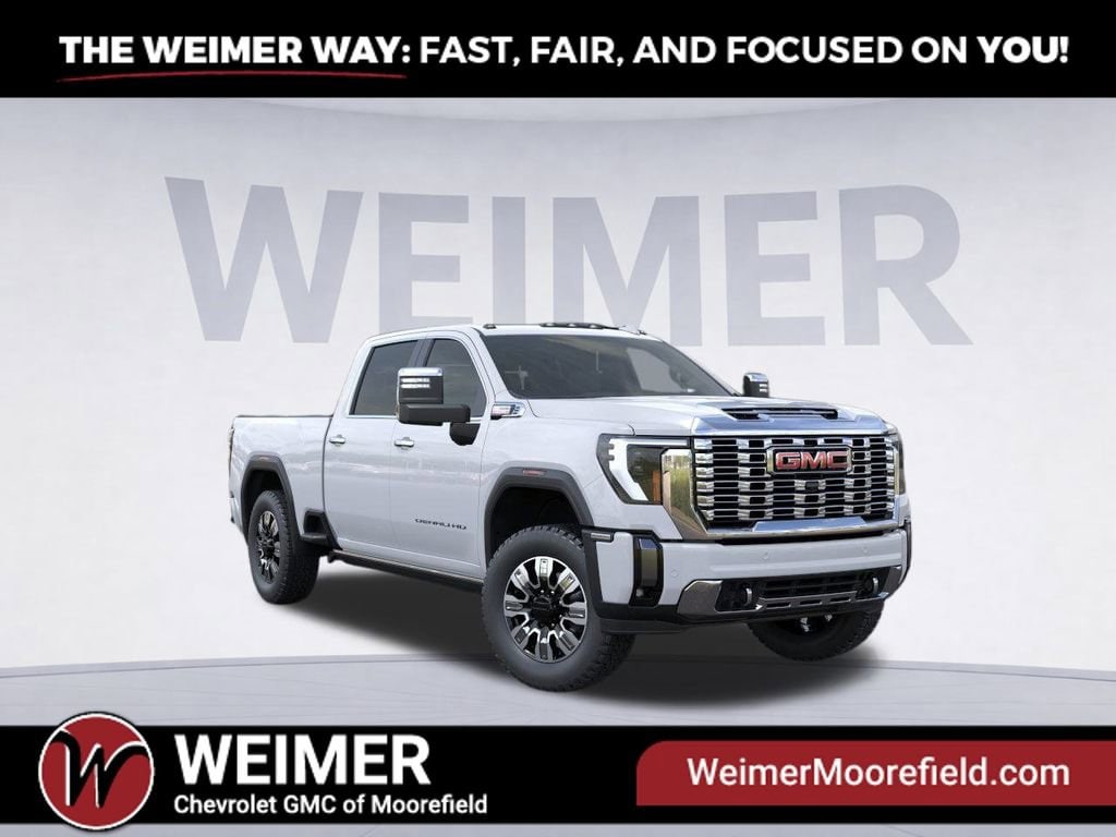 Glacier White Tricoat 2026 GMC Sierra 2500HD Denali 4WD 10-Speed Automatic Duramax 6.6L V8 Turbodiesel 10-Speed Automatic, 4WD, Atmosphere/Brownstone Leather. Price includes: $500 - Purchase Allowance. Exp. 03/31/2026